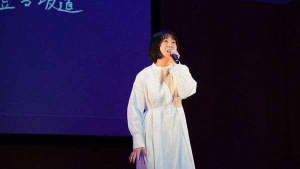 世界中を旅した気分が味わえるというコンセプトで制作されたアルバム『まぐろのおしながき』から、『憧れのラッタッタ~わらびヲ餅編~』を披露。わらび餅と、人気になりたい女子高生の甘くも儚い気持ちを表現したという楽曲は、自ら名付けたジャンル名「フードポッパー」を形にしたような、食べ物が出てくるポップなもの。