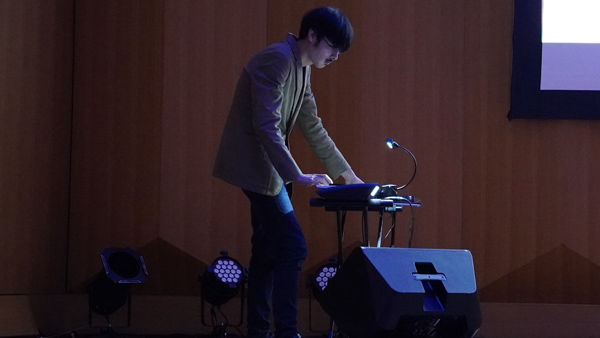 ステージの片隅で黙々と演奏されるトラックは、説明や歌といった言語情報が一切ない、ストイックでミニマルなもの。