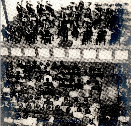 教員による独奏のほか混声合唱が披露された。公演は大成功をおさめ、収益でブリュートナー製のグランドピアノほか管楽器を購入した
