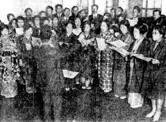 60名からなる混声合唱団が出演、当時これだけの規模の混声合唱は珍しいものであった