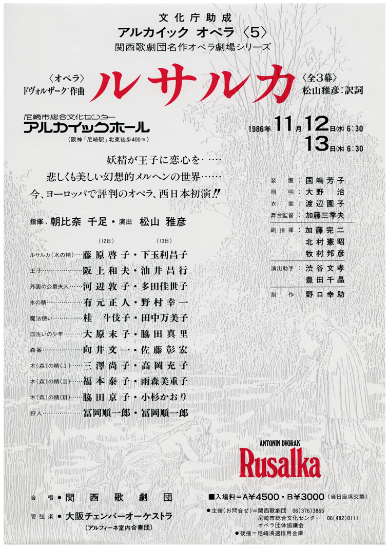 11月12、13日 関西歌劇団名作オペラ劇場シリーズ ドヴォルジャーク《ルサルカ》西日本初演(アルカイックホール)