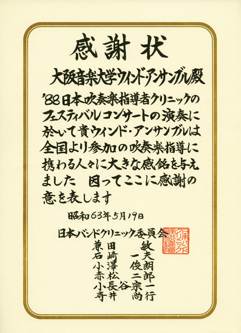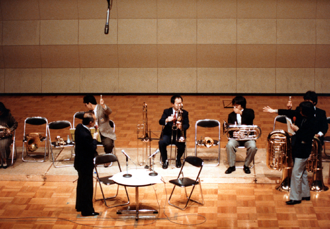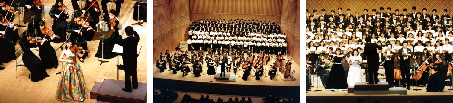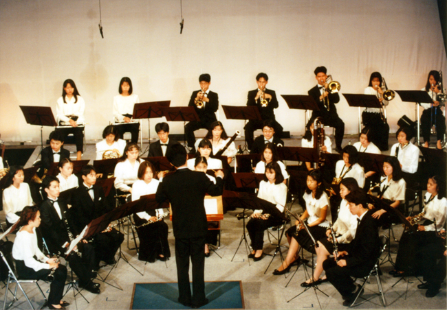 関西吹奏楽連盟主催のブラス・エキスポ’95に本学管弦打楽器専攻生350名が特別出演。指導と演奏を行った