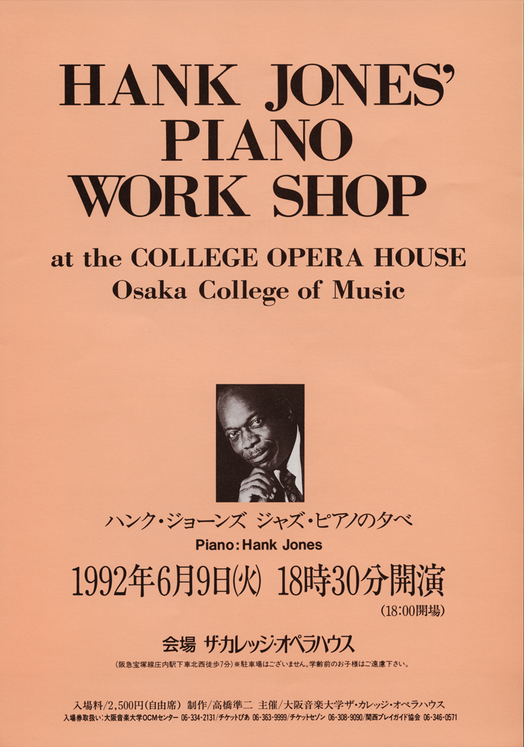 第1部がハンク・ジョーンズ・トリオの演奏、第2部がそのトリオとジョーンズ氏をはじめとするジャズ・クラスの担当教員、選抜学生、卒業生を中心に結成したビック・バンド「Winds Jazz Orchestra O.C.M」との共演であった。