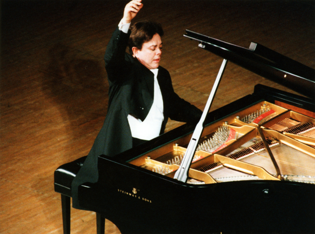 スラットキン指揮セントルイス交響楽団と共演する五嶋みどり(昭和61年12月1日 関西音楽新聞より)