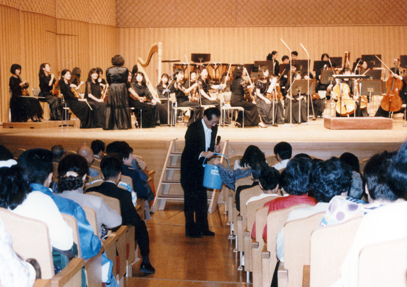 指揮者に迎えた岩城宏之が第1部終了後、マイクを持って現れ、聴衆に義援金を呼びかけた。岩城は大阪のホテルで震災に遭遇して以来、救援活動を続けていた。ソリストの田中勉教員、楽団員たちもバケツを持って客席を回り、募金を行った。集まった21万6,429円とテレホン・カード229枚は岩城の意向により、神戸大学の外国人留学生後援会に贈った。後日同会会長より丁重な礼状が届く。