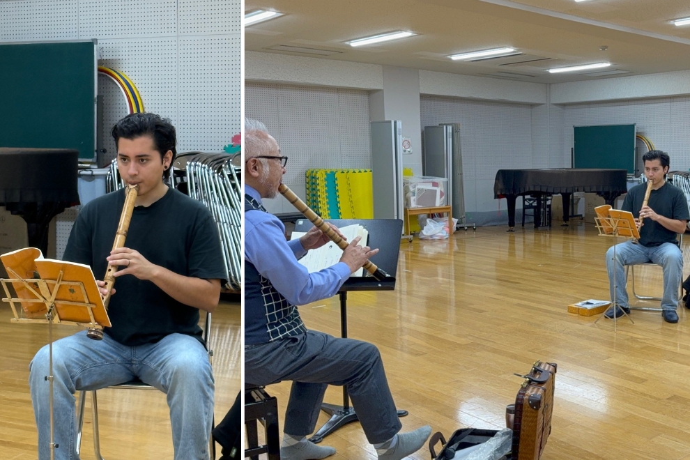また、以前から関心のあった日本の伝統音楽について、尺八や雅楽の授業を通して学べていることも大きな魅力です。これらの授業では、音楽だけでなく文化についても理解が深まり、日本文化をより深く探求したいという目標に近づいていると感じています。