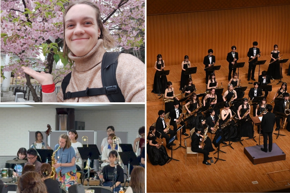 Ich bin total begeistert und inspiriert von den Studierenden und den Dozenten am College of Music Osaka. Es ist so interessant, durch meine Mitmenschen an der Universität eine neue Perspektive auf die mir schon bekannten Dinge im musikalischen Kontext zu haben. Natürlich lerne ich auch sehr viel Neues, was ich in Deutschland vermutlich nicht lernen würde oder vielleicht auf eine andere Art und Weise. Auch bin ich vom Shamisen und traditionell japanischer Musik begeistert, da ich noch nie etwas damit zu tun hatte, aber mich absolut in diese Musik verliebt habe. Obwohl ich Jazz studiere, hatte ich im letzten Semester die großartige Möglichkeit gehabt, am klassischen Saxophon-Orchester teilzunehmen. Es hat so viel Spaß gemacht (...und war etwas herausfordernd)!