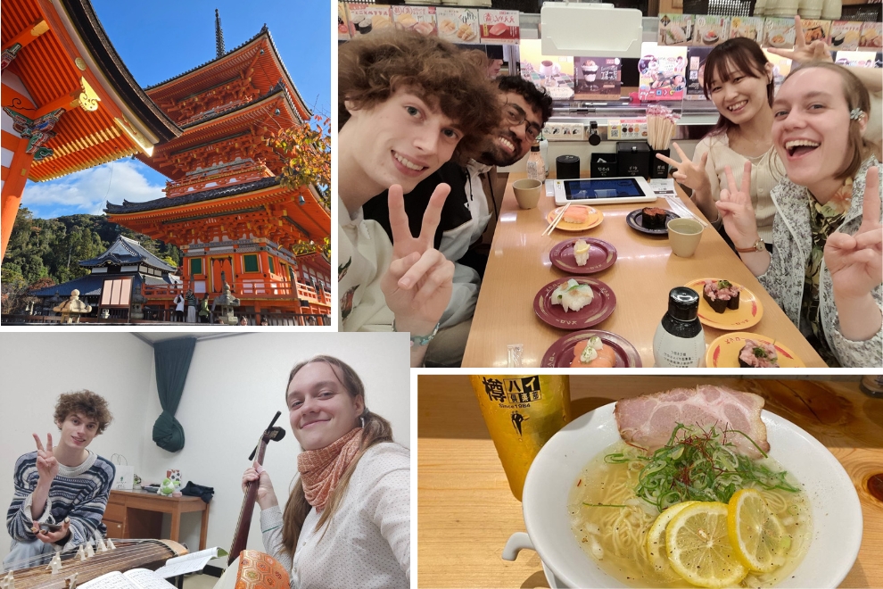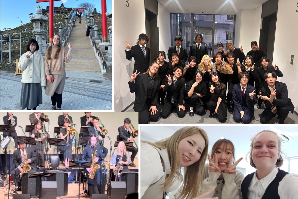 学業の合間には、札幌や旭川の雪景色、東京(なかでもサンリオピューロランド)、姫路、岐阜でのスキー、神戸での演奏、そして京都など、さまざまな場所を訪れました。友人たちと行ったカラオケは特に楽しく、恋しく思っています。日本の食べ物も大好きで、特にお刺身は格別でした。シナモロールのグッズもたくさん集めました。