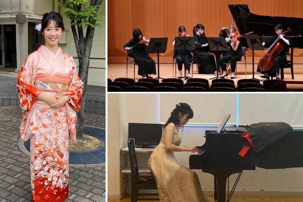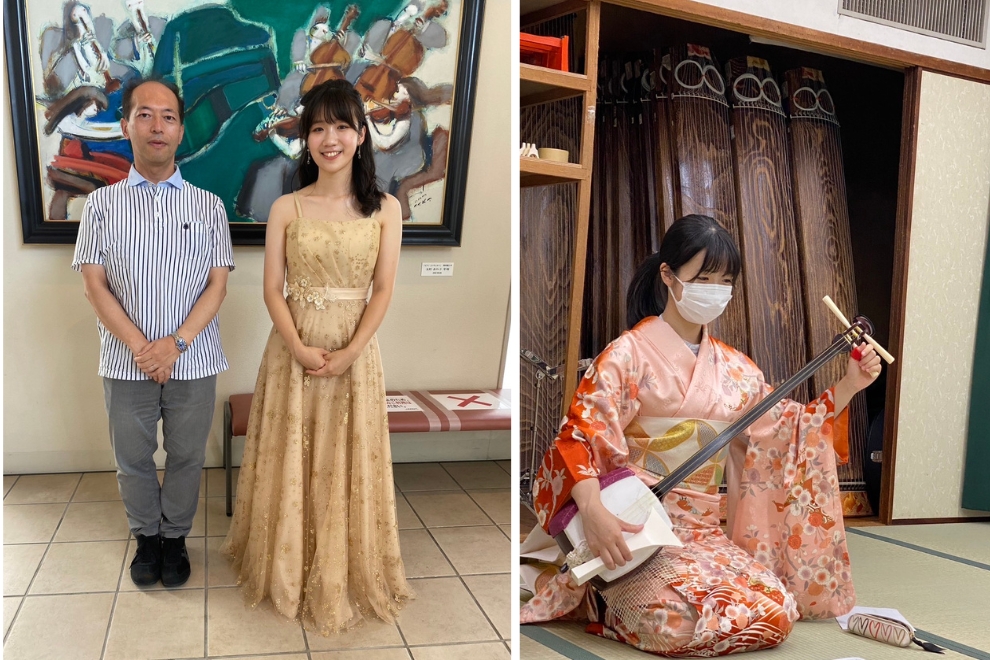 私は、2021年9月から2022年7月まで大阪音楽大学で交換留学生として貴重な学びと体験をしました。毎週のピアノレッスンはもちろん、以前から興味のあった三味線のレッスンや室内楽、ピアノ構造論、琴とピアノ演奏法の授業等も受講することができ、音楽の知識や演奏の幅が広がりました。