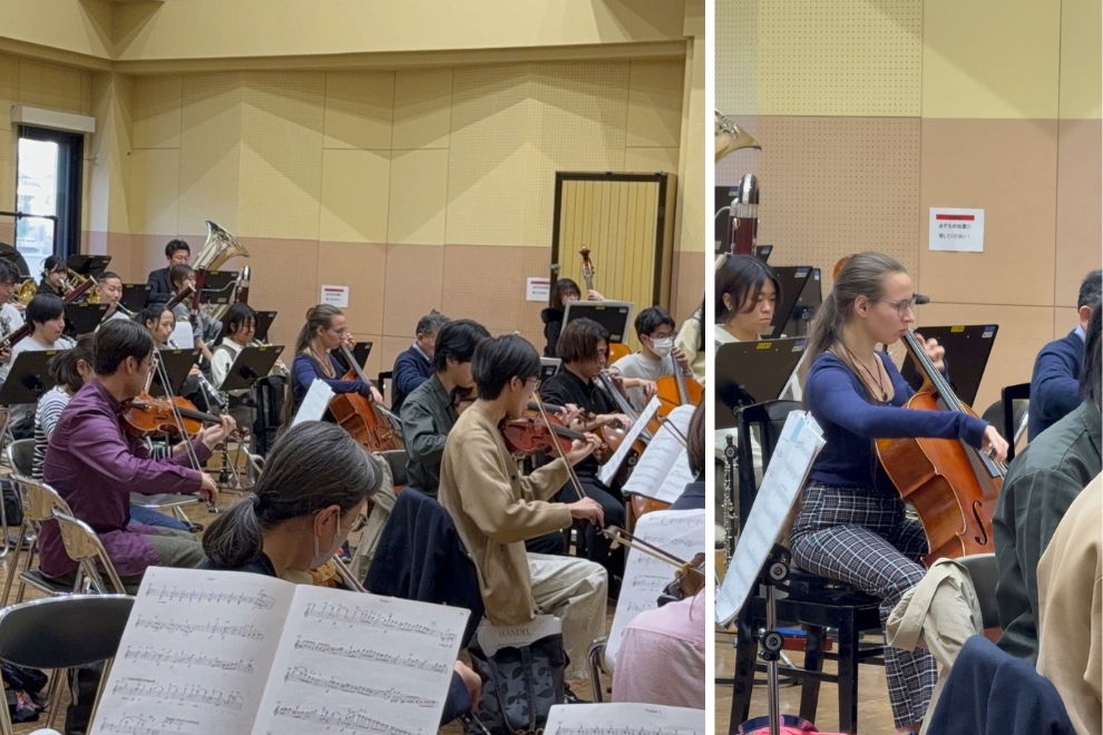 チェロを専攻しています。日本で学ぶ中で、すでに多くの新しい発見がありました。特に、日本とドイツの教育方法の違いを知ることは非常に刺激的です。リハーサルの進め方も異なりますが、個人的には日本の方法をとても気に入っています。人々がどのように協力し合うのかを観察するのも興味深いです。