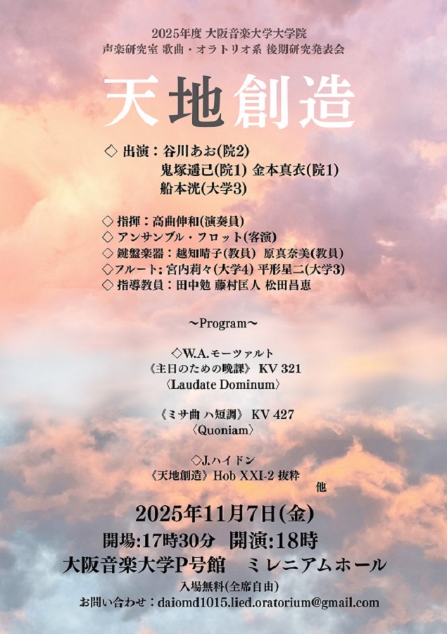 - 11/7(金)「大学院声楽研究室 歌曲・オラトリオ系 後期研究発表会」