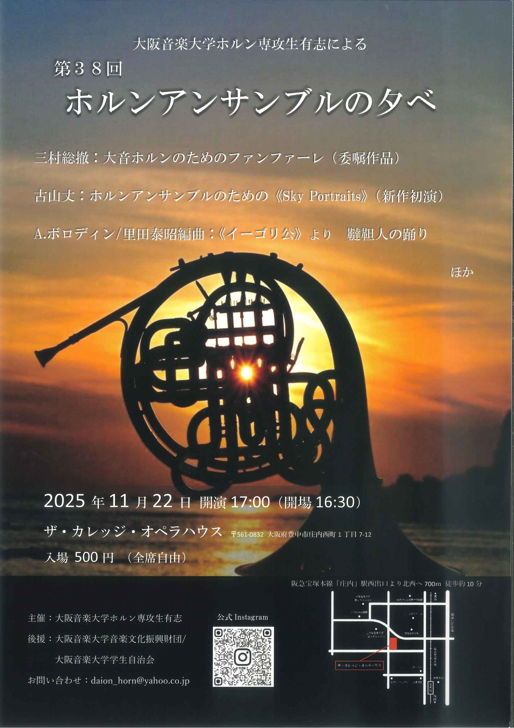 - 11/22(土)大阪音楽大学ホルン専攻生有志による 第38回ホルンアンサンブルの夕べ