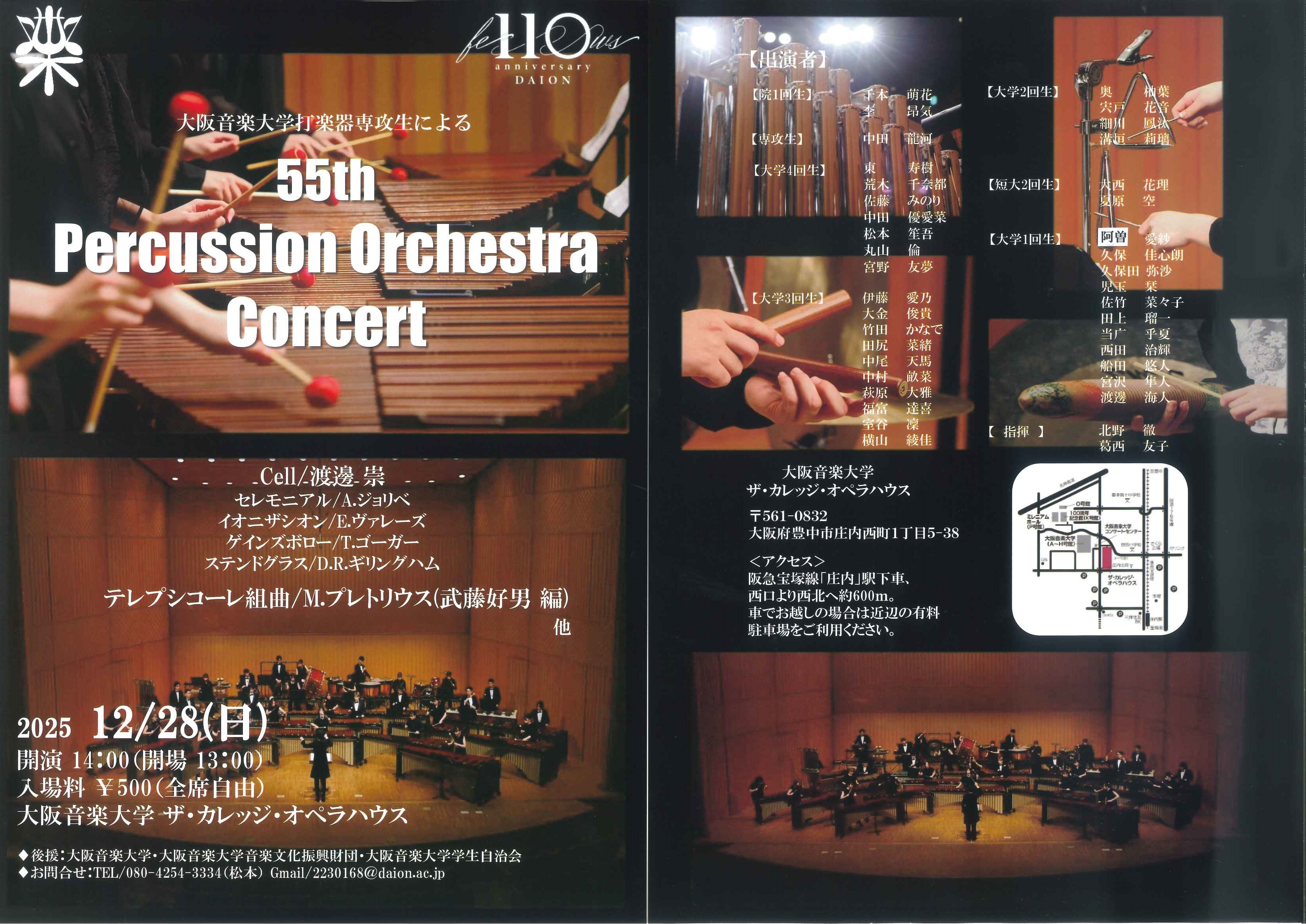 - 12/28(日)大阪音楽大学打楽器専攻生による 55th Percussion Orchestra Concert