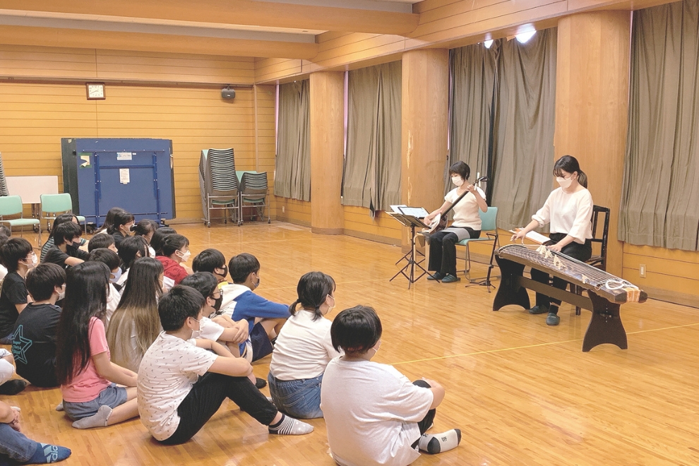 教員や在学生が大阪府豊中市内の小中学校を訪問し、邦楽器の指導や出張演奏会を行っています。