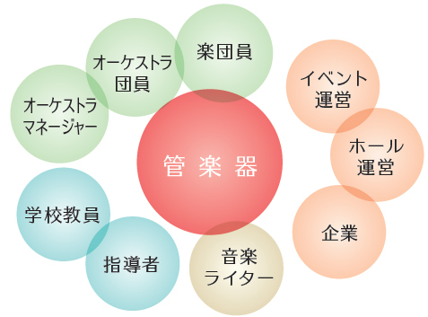 多くの卒業生が吹奏楽指導者としても活躍するなど、さまざまな進路が広がっています。