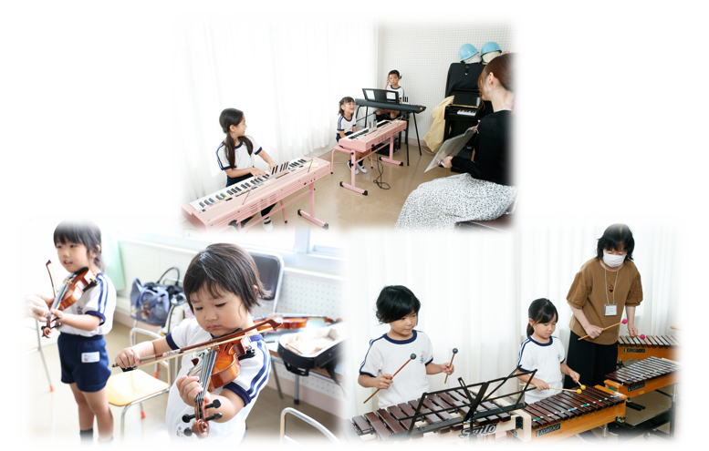 保育の中では歌や表現、楽器など、独自の音楽カリキュラムをもとに音楽を楽しみます。