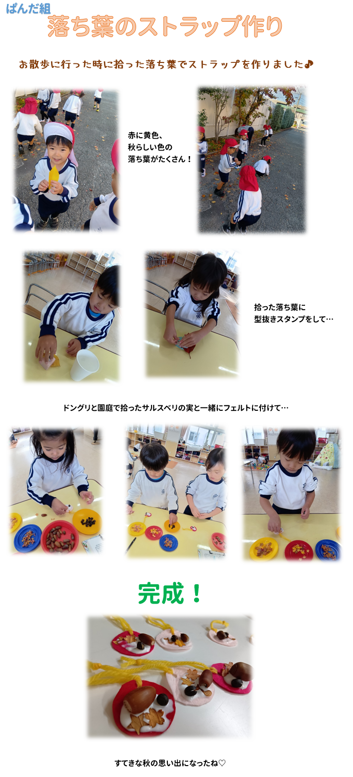 TOP >  日々のできごと >  2025年度「日々のできごと」 >  落ち葉のストラップ作り【ぱんだ組】