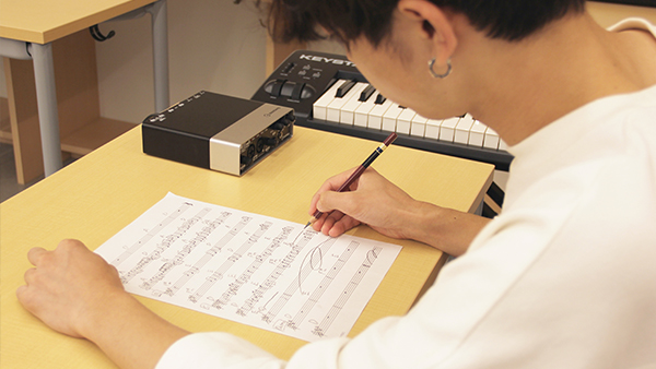 音楽が入っていない状態の実際の映画に対し、物語を効果的に演出できる音楽の位置を考え、それに沿った劇音楽を作曲します。音楽によって映像の印象が変わる事を理解し、監督のイメージに「音」でいかに応えるかを学びます。