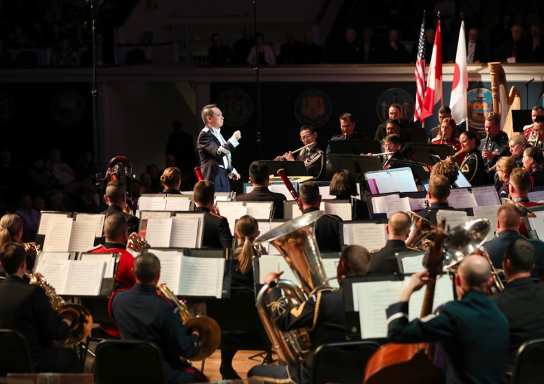 ワシントンDCで開催されたABA総会で、米五軍合同バンドを客演指揮